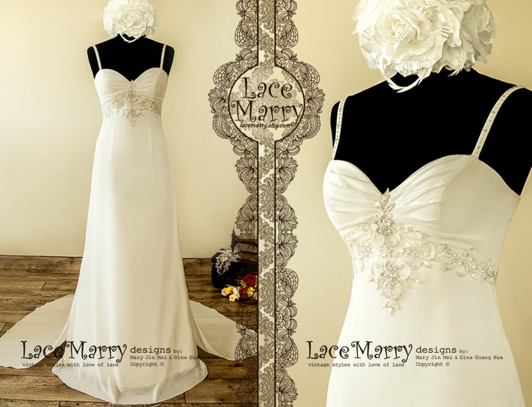 Swan Chiffon Wedding Dress With Sweetheart Neckline And Beaded Etsy